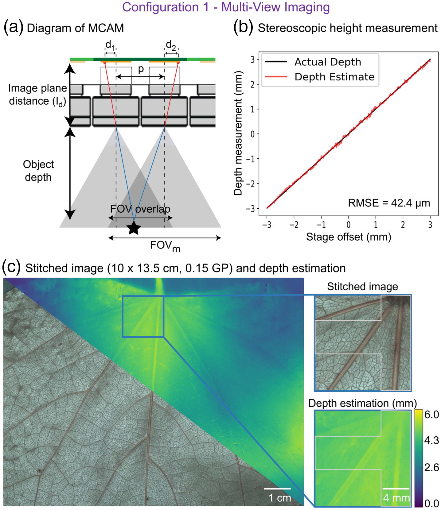 Moreover, we can configure the camera array in a stereoscopic setting where multiple cameras image the same FOV. Using triangulation, we can create a high-resolution, high-precision RGB-D image.